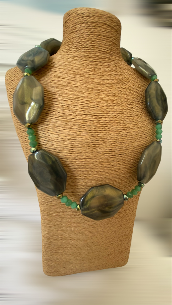 Conjunto ressignificado colar pérola ABS e entremeio de vidro preto flor - 48cm; detalhes prateados; acompanha brinco no anzol com pequeno ponto vermelho na pérola sem prejuízo do efeito;