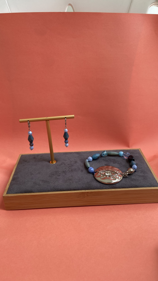 Pulseira com fecho magnético e 3 tonalidades de couro trançado;